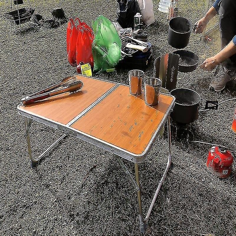 Table de camping pliante en alliage d'aluminium pour l'extérieur (couleur bois)