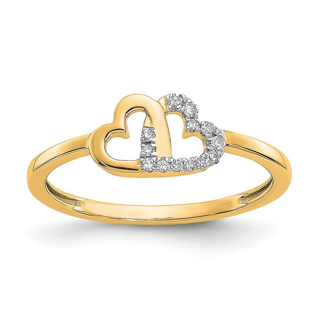 Bague en or 10 carats avec double cœur et diamants de 2 mm, taille 7,00, bijoux cadeaux pour femmes €490.0 |