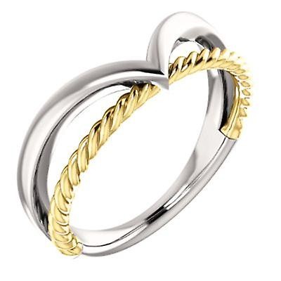 Bague en or blanc 14 carats et or jaune poli avec corde à espace négatif, taille 6,5, bijoux cadeaux €1590.0 |