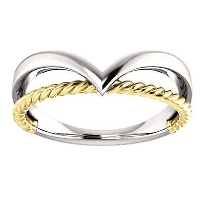 Bague en or blanc 14 carats et or jaune poli avec motif de corde à espace négatif - Taille 6,5 - 3,5 grammes en or jaune 14 carats - Coffret à bijoux prêt à offrir inclus