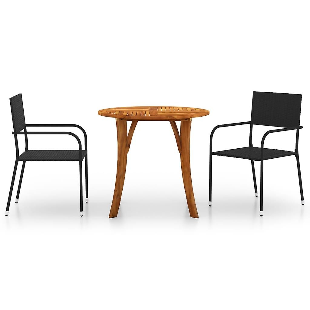 Table:Matériau : Bois d'acacia massif, traité à l'huileDimensions : 85 x 75 cm (diamètre x H)Pièce de dessus de table rke : 2 cmChaise :Couleur : Noir Matériau : rotin PE, acierDimensions : 51 x 60 x 87 cm (L x P x H)Largeur d'assise : 48 cmHauteur d'assise : 42 cmAssemblage requis : OuiLa livraison comprend :1 x table2 x chaises